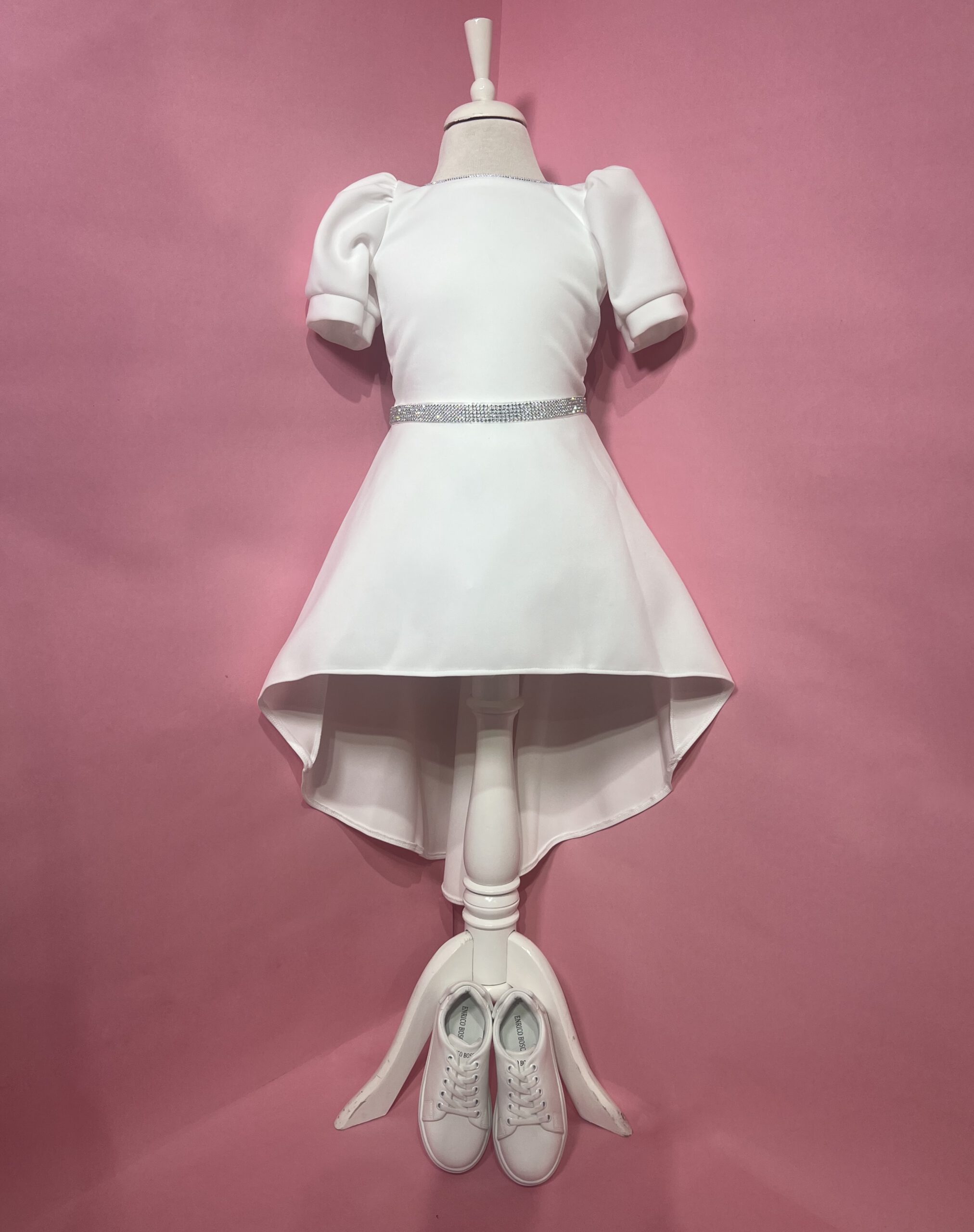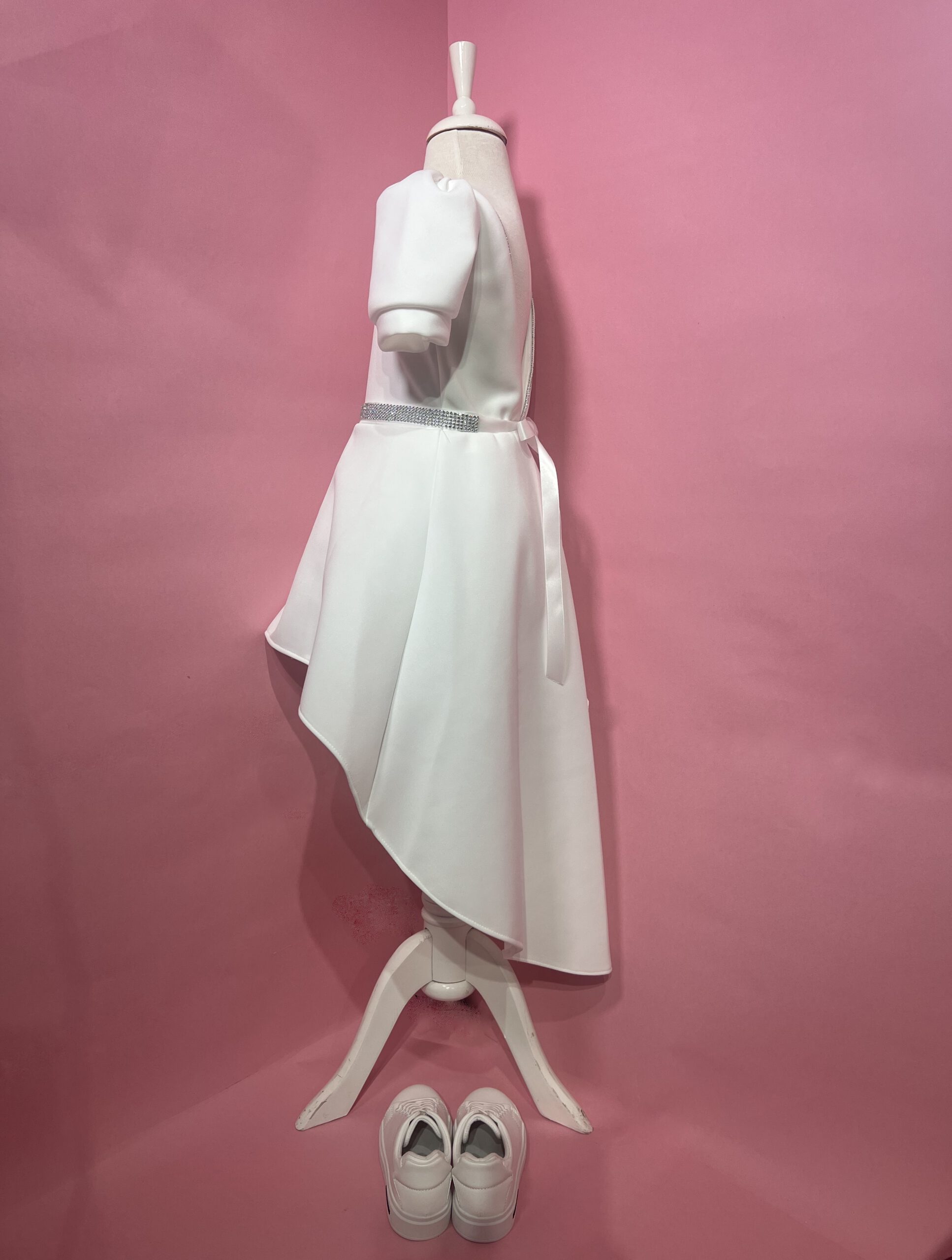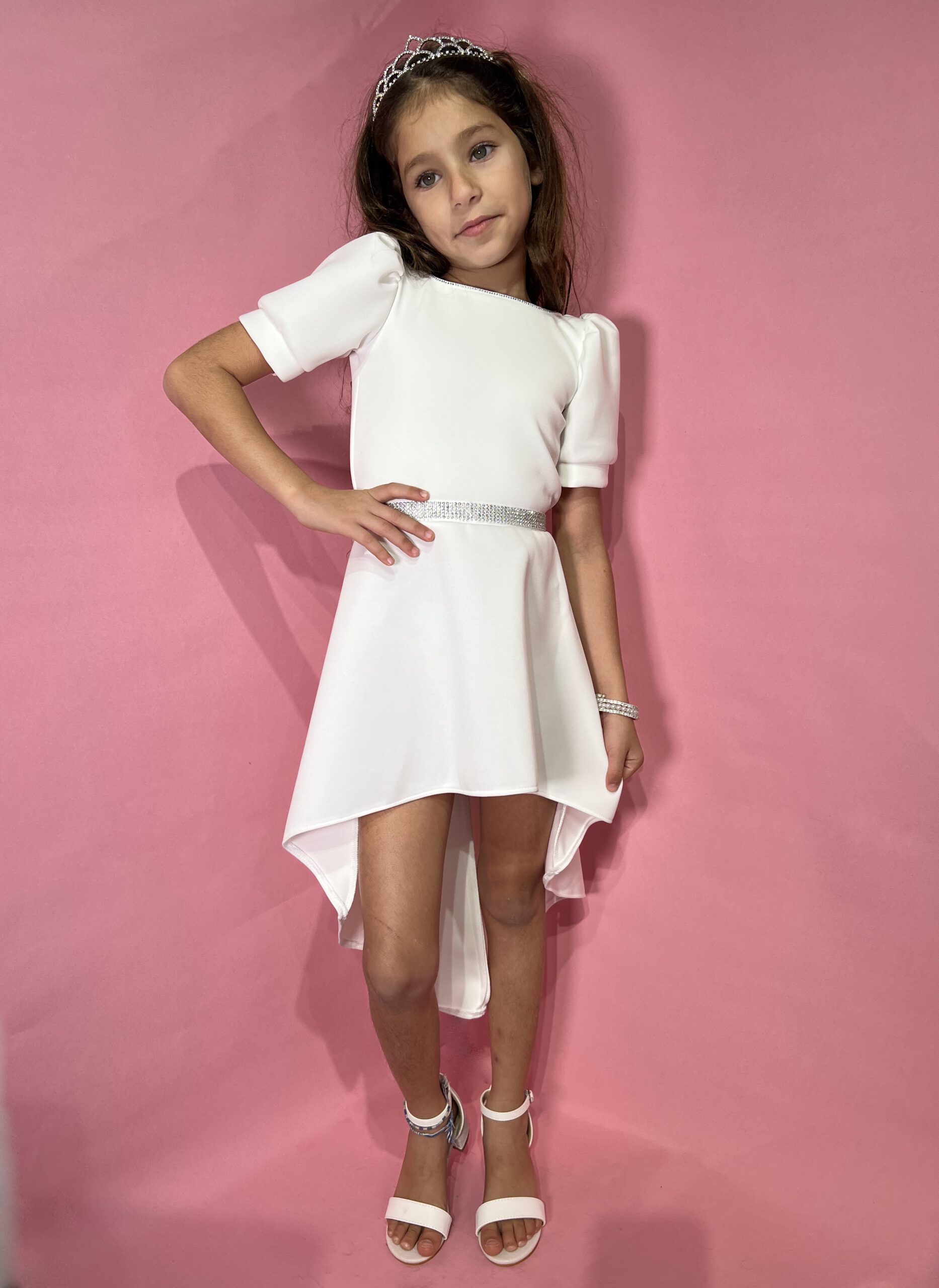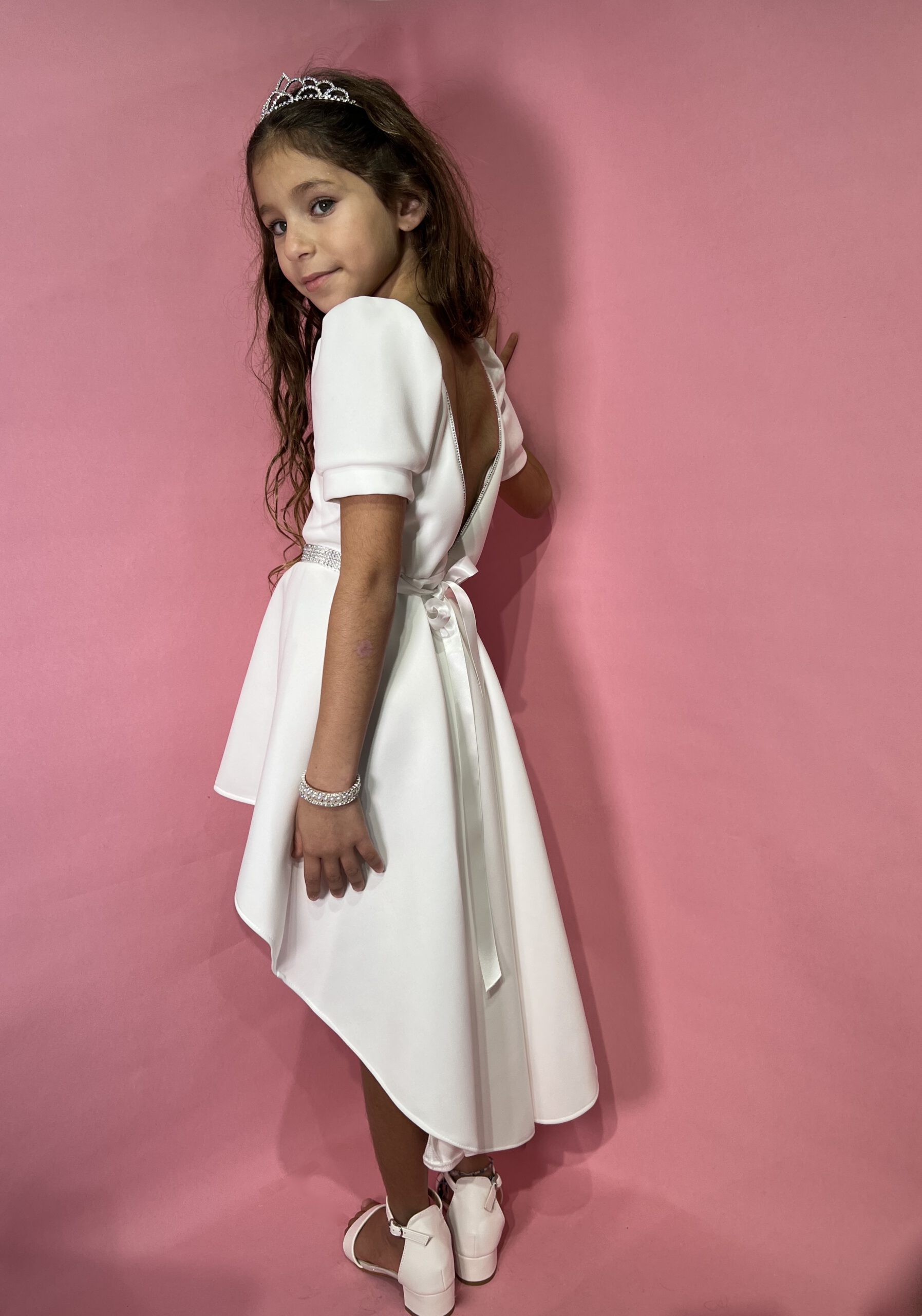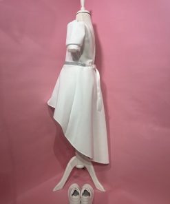 שמלת שושבינה קצרה מקדימה וארוכה מאחורה תפורה מבד פרדה איכותי עם אבנים עדינות לרמת גימור מושלמת של השמלה. שמלה מושלמת זאת נתפרה בסטודיו שלנו ועוצבה על ידינו לשושבינות שלא יוכלו להוריד מהן את העיניים.