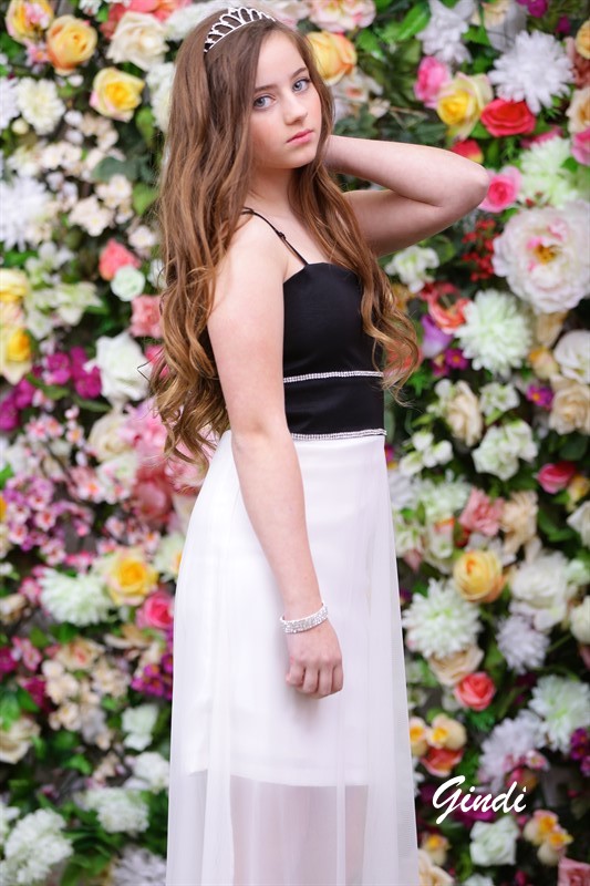 שמלות בת מצווה -שמלת בת מצווה דגם ליאת שחור לבן