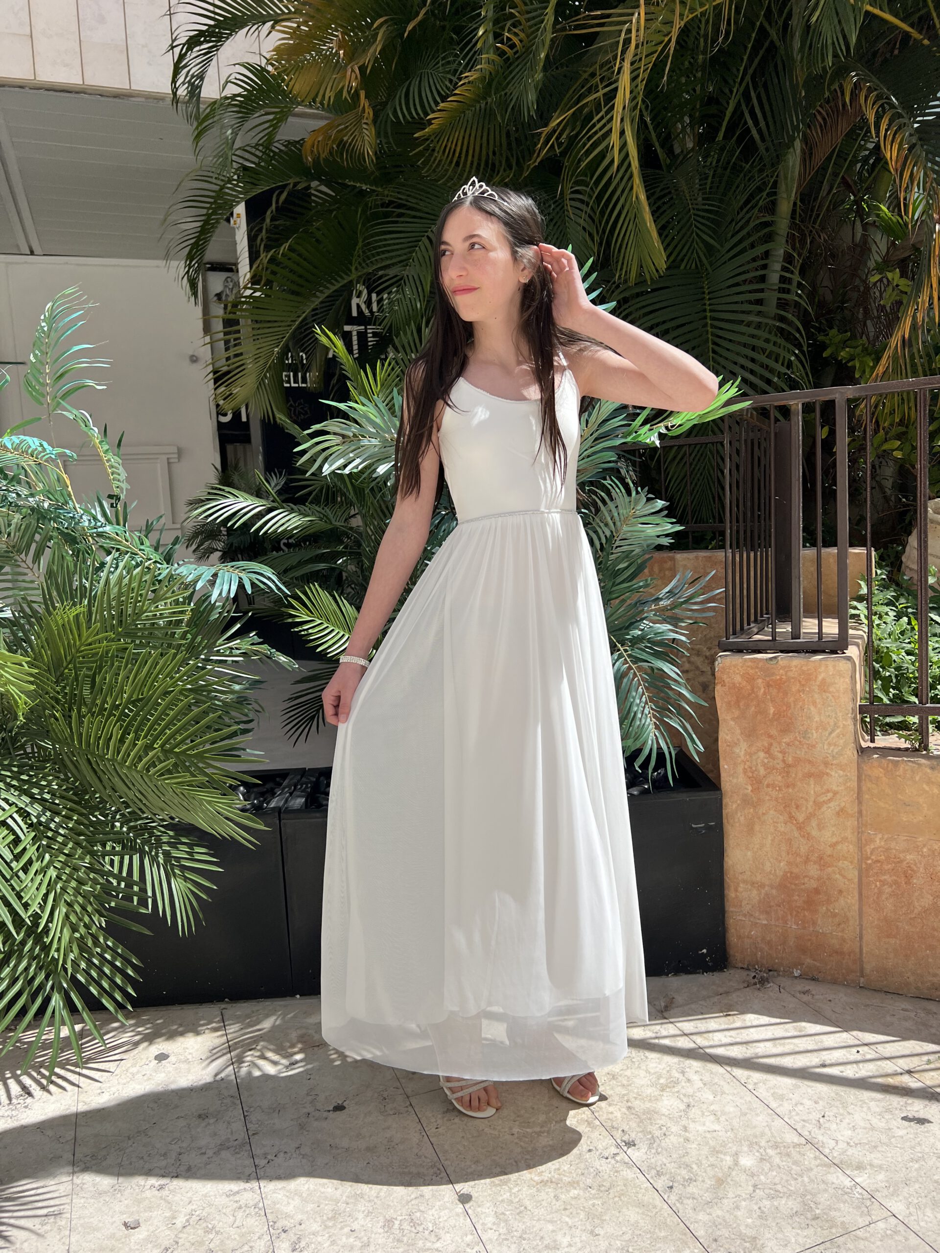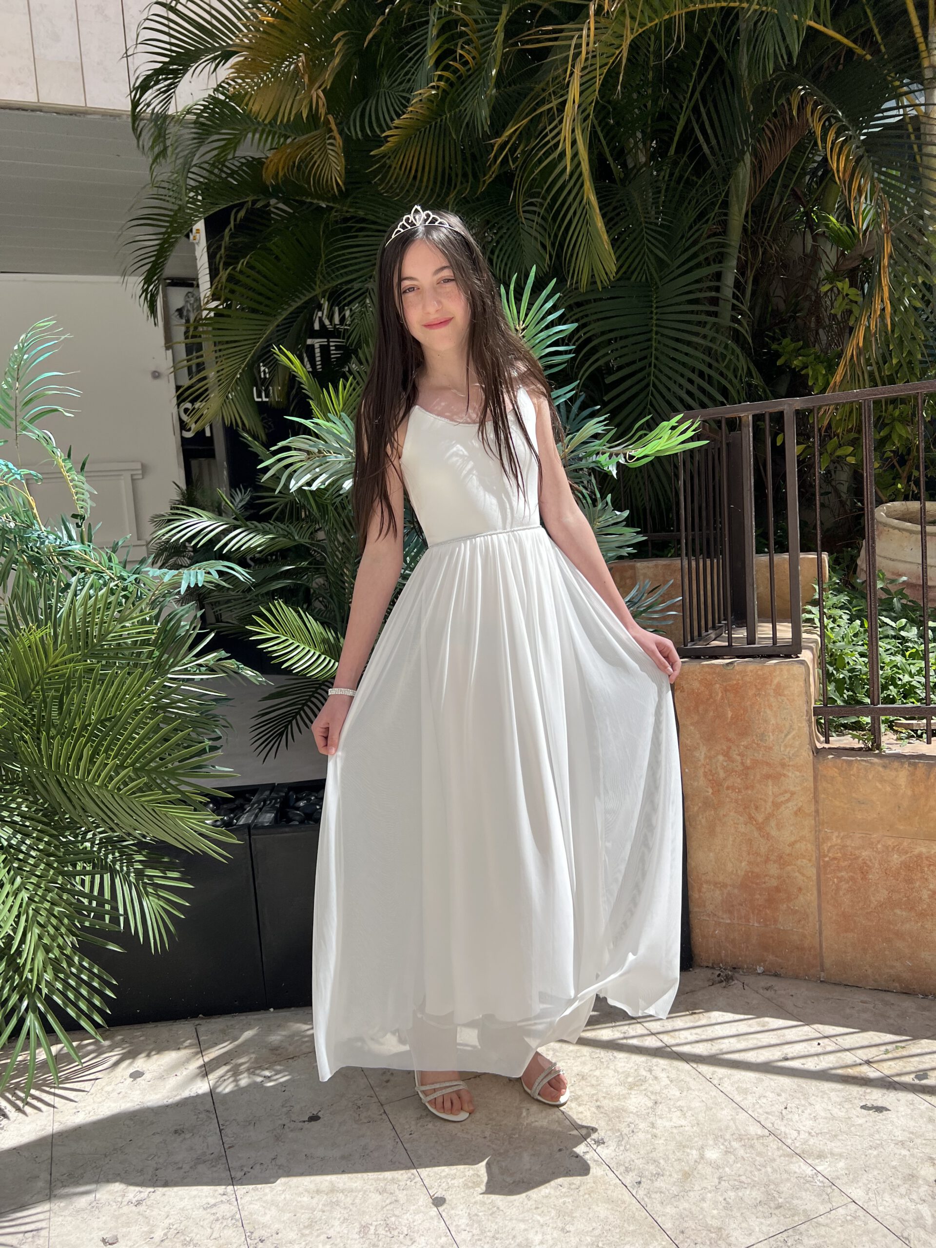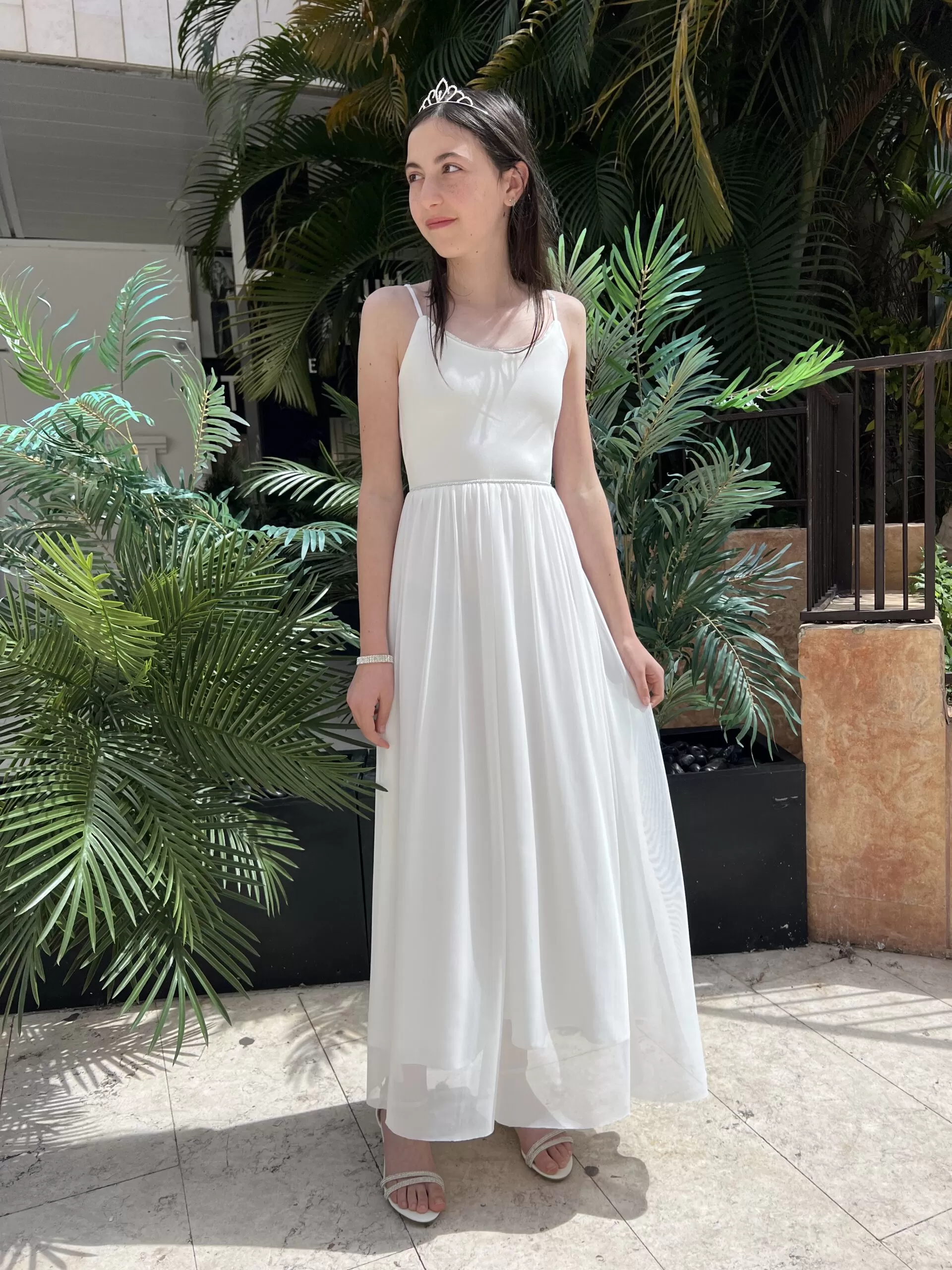 תכירו את שמלת בת מצווה חלקה וקלאסית דגם מקסי b נדירה ומרשימה בטירוף .