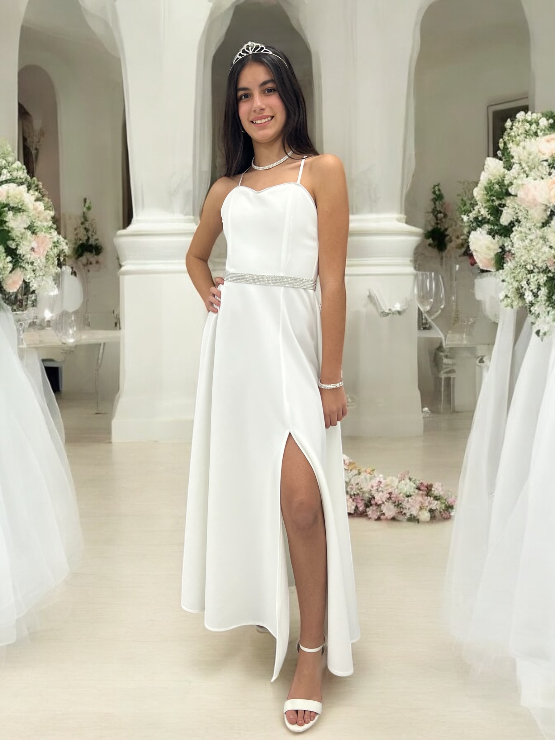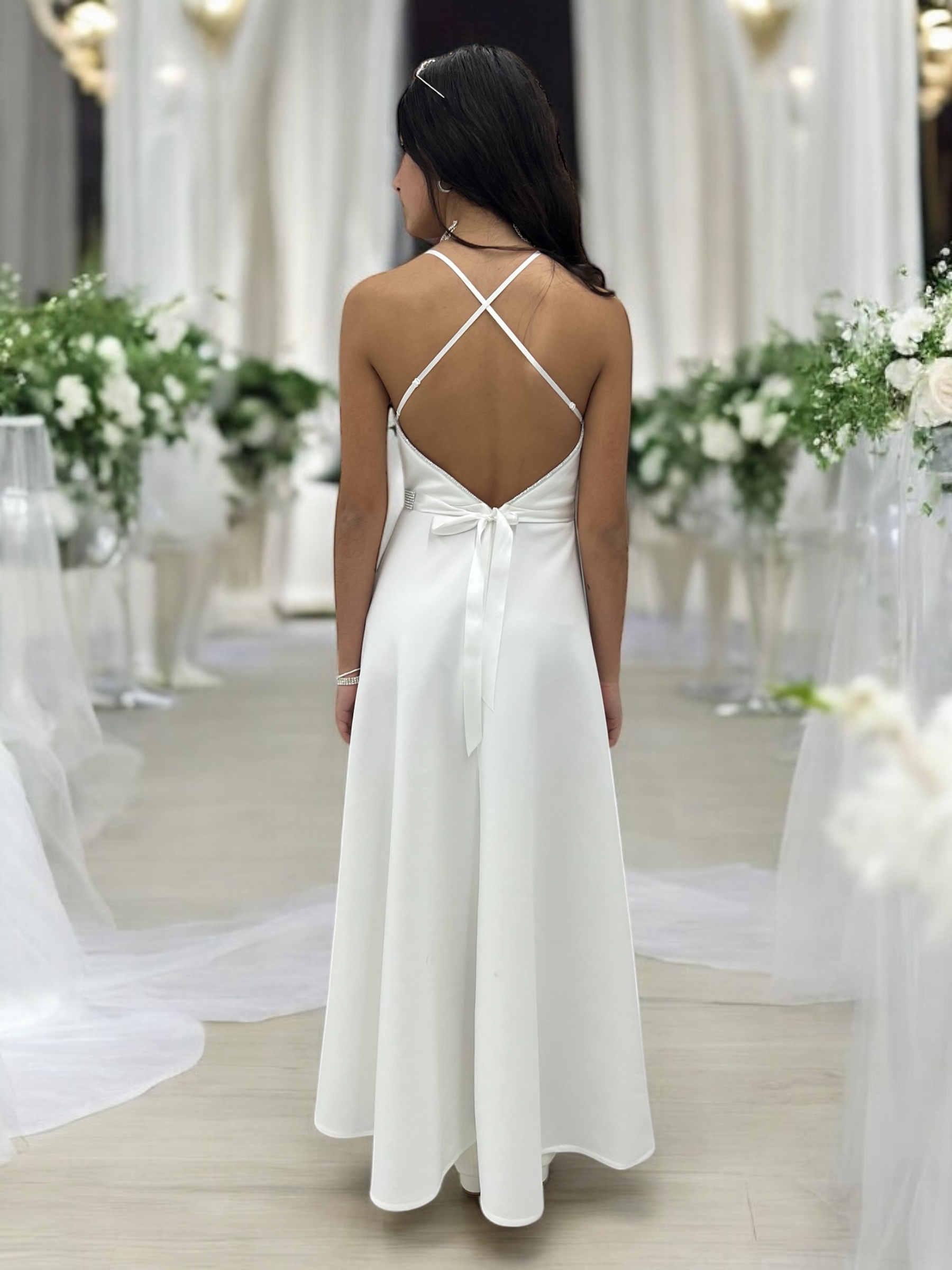 חצאית של השמלה בידיוק באורך הנכון לא ארוכה מידי ולא קצרה מידי על מנת שלכלת בת מצווה יהיה נוח בשמלת בת מצווה של חלומותיה.