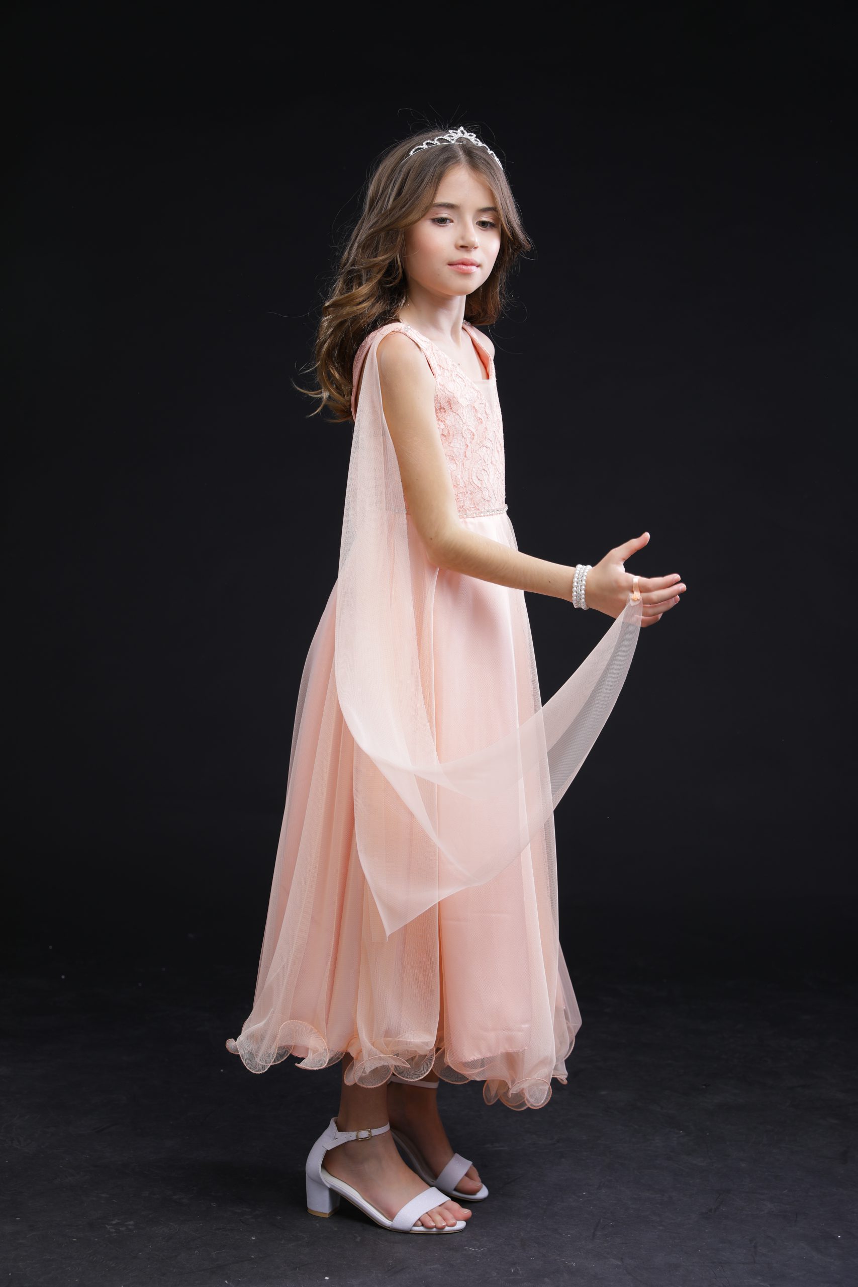 שמלת שושבינה בלום בצבע אפרסק מקסי לשושבינות