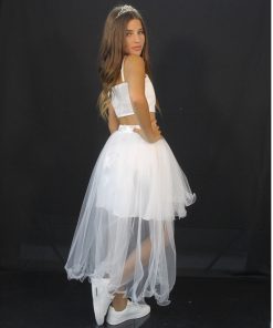 חולצת בטן וחצאית טוטו עם שובל מאחורה